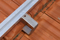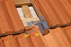 Auf dem Dach werden einzelne Dachziegel entfernt, um darunter die Haken... |